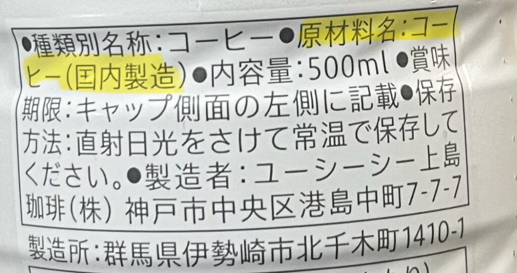 たしかに原材料名を見ると、「コーヒー」とだけ書かれていますね。